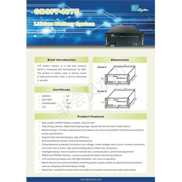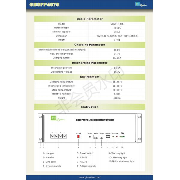 Intelligent telecommunication backup power with LiFePO4 battery 48V75Ah lithium ion battery GBS-LFP75Ah